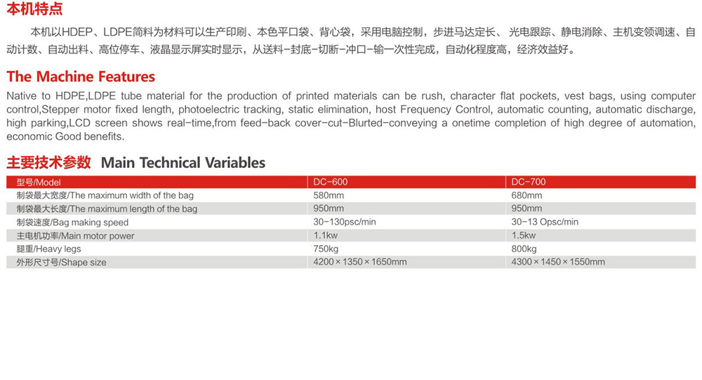 DC-600-700 single automatic vest bag making machine